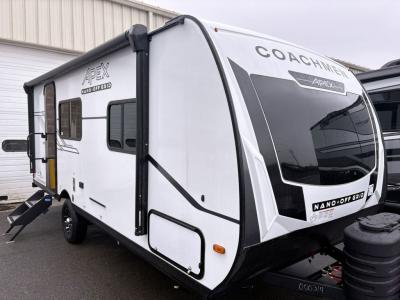 Start your next adventure today by discovering the Coachmen Apex Nano! These RVs blend luxury with practicality, making every adventure a breeze. Weighing under 4,500 lbs and less than 26 ft long, they're perfect for towing with a half-ton truck, minivan, or SUV; no heavy-duty truck needed. With a few different floor plans, you can choose from a variety sleeping options, from a Full XL or Queen-sized bed to double bunks, plus a modern kitchen with granite and stainless steel finishes. The spacious bathroom, with its shower skylight, adds a touch of luxury. With modern amenities like a fully equipped kitchen, a Bluetooth stereo, and LED lighting, every journey will transform into a fun and comfortable experience. Browse our selection of Coachmen RV Apex Nano travel trailers for sale in NY & NJ, and stop by today to tour any of our models!