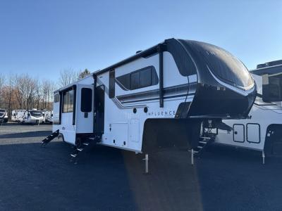 Any Grand Design Influence fifth wheel features five-sided aluminum cage construction with a walk-on roof and a fully enclosed underbelly with heated tanks and storage for all weather camping. For peace of mind, the MORryde CRE3000 Suspension system will provide safe and smooth towing, and the 101" widebody construction offers all the room you need and that is before multiple slides are fully engaged. You will appreciate the Keyed-Alike locks, slam-latch baggage doors with magnetic door catches, exterior security light, and SolidStep entry steps. On the inside, Congoleum flooring, premium roller shades for privacy, a hallway handrail for safety, and nightstands with USB ports to keep all of your electronics fully charged. You will also love the on demand tankless water heater when showering, plus the added heat and ambiance from an electric fireplace, and so much more!