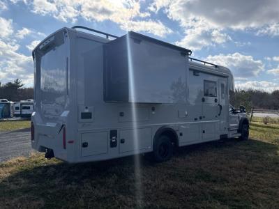 The capable Lineage Series F Super C diesel motorhome by Grand Design is your ticket to adventure! There is a Fox Factory Suspension Package for optimal handling, and you can go off the beaten path with the 6.7L power stroke diesel 4x4 chassis. This coach sits on the Ford F-600 super duty platform, and features a MorRyde tubular steel frame for added strength and durability. You'll find many at-home comforts inside, including comfortable seating and sleeping spaces, full bath and kitchen amenities, and plenty of storage for your personal belongings and camp gear!