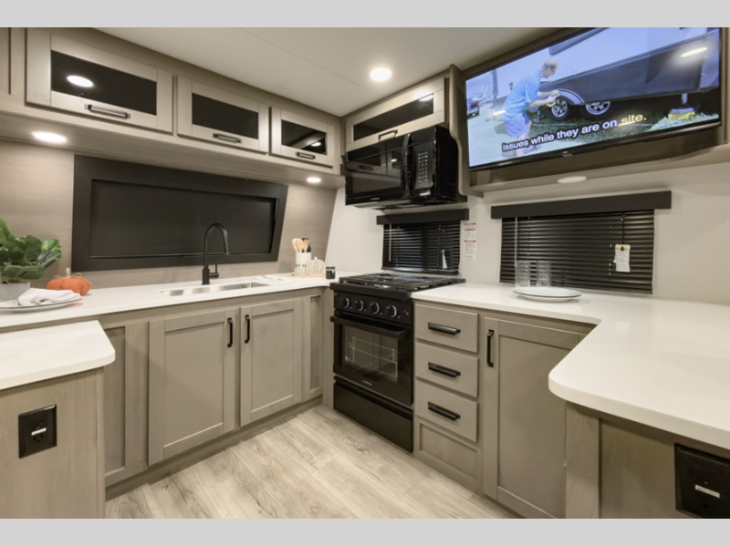 Reflection is built with the Arctic 4-Season Protection package which provides a 35K BTU high-capacity furnace, double insulated roof and front cap, a heated and underbelly with circulating heat, and 12V heat pads on the holding tanks to mention a few features that allow you to travel during any climate. The interior offers residential cabinetry, a deep-seated stainless-steel kitchen sink in the gourmet kitchen, a spacious shower with a glass door, and ductless flooring in the living area to name a few comforts.