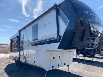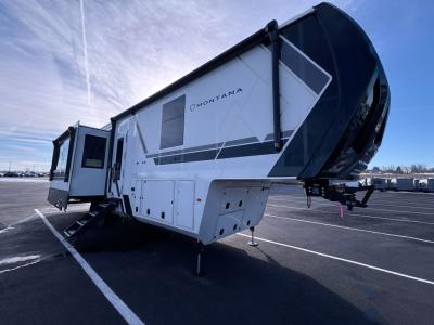 Enjoy luxury, innovation, and the outdoors in any one of Montana's finest fifth wheels. Each set the standard with exceptional features, and exciting factory installed options to provide you a great home on the road. Keystone's 12" I-beam chassis with z-frame technology provides a strong and durable foundation to your fifth wheel, and the four-season living package will help extend your camping season. There are also square frameless windows outside, along with storage solutions, and a hydraulic leveling system that will have you set up in no-time! Inside, you'll love the hardwood cabinetry, solid surface countertops, spacious showers, and cozy bedrooms!