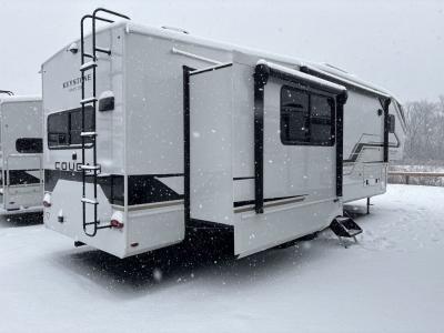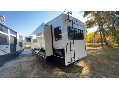 The fifth wheel RV is arguably the most versatile body style in the RV market, and there are many reasons why this is the case! Towing a fifth wheel is very simple, as the trailer hitch attaches directly to your truck bed, which improves maneuverability and provides a smooth, easy ride. As for the living space, you will find that fifth wheels are spacious and full of entertainment and storage spaces. Many models come with a fully equipped lounging area, featuring theater seating, an LED TV and electric fireplace, and a built-in dining space. As for the kitchen in a fifth wheel, there is plenty of prep space on either a wide countertop, or a kitchen island. This gives you the opportunity to create deliciious snacks and meals during your adventures! To the exterior, many models feature an outdoor kitchen setup, giving you a place to make some late night snacks while sitting by the fire, or gazing up at the stars. Overall, the luxury feeling provided by a fifth wheel is well worth the budget-friendly price tag on them! Stop by Alpin Haus today and tour our various fifth wheel RVs for sale in NY & NJ.